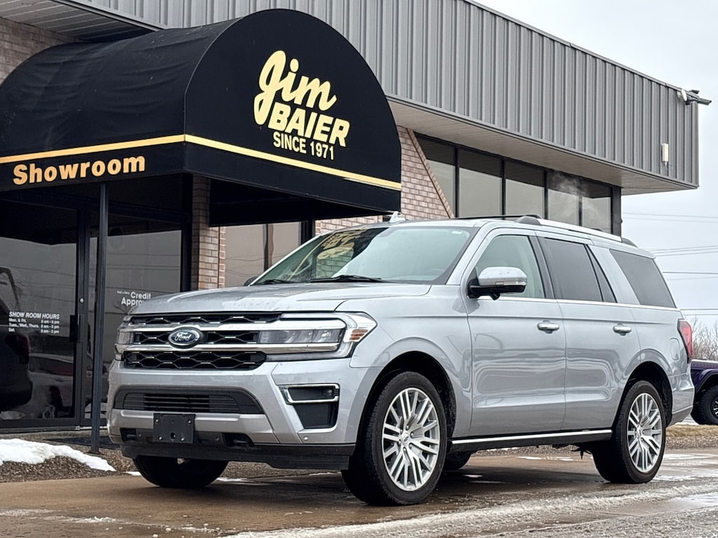 This 2024 Ford Expedition Limited 7-Passenger 4x4 is a 1-owner, local trade with a perfect Carfax. It features a Panoramic Vista Roof, active grille shutters, body-color door handles with bright inserts, easy fuel capless filler, LED reflector headlamps with signature lighting, LED tail and fog lamps, roof-rack side rails, privacy glass, rain-sensing wipers, a power liftgate, trailer sway control, Class IV trailer tow prep package, and an intelligent 4WD system. Inside, it offers heated and ventilated front seats, heated second-row seats, leather-trimmed 10-way driver and 8-way passenger seats with memory, a powerfold 3rd-row seat, tri-zone automatic climate control, a heated leather-wrapped steering wheel with mounted controls, power-adjustable pedals with memory, smart USB charging ports, one-touch up/down windows front and rear, ambient lighting, and a B&O 12-speaker premium audio system. It also comes with a 1-year trial of connected navigation and FordPass Connect 4G Wi-Fi hotspot. For safety and technology, it includes 4-door intelligent access with push-button start, Ford Co-Pilot360 Assist+, remote start, SiriusXM 360L, HD Radio, advanced airbags including dual-stage front, side-impact, and safety canopy, LATCH child safety system, rear occupant alert, SecuriCode keypad, SecuriLock anti-theft system, Advancetrac with RSC, a perimeter alarm, and a personal safety system. This Expedition is ready for family adventures, towing, and daily driving with a perfect blend of luxury, safety, and capability. Comes with our lifetime engine warranty up to $4,000 "if" you get your oil changes done here and get the BG additive applied every visit! You're not just a number here at Jim Baier, our #1 priority is taking care of you before, during, and after the sale! We strive to build a lasting relationship with our customers and service their transportation needs for life! And that's what has given us the privilege of being named the #1 rated dealer in Southeast Iowa. Come experience the difference! Call/text (319) 371-4268, or email us at JESSE@jimbaier.com before you stop in to make sure this vehicle is still available and we'll have it pulled up front when you arrive!