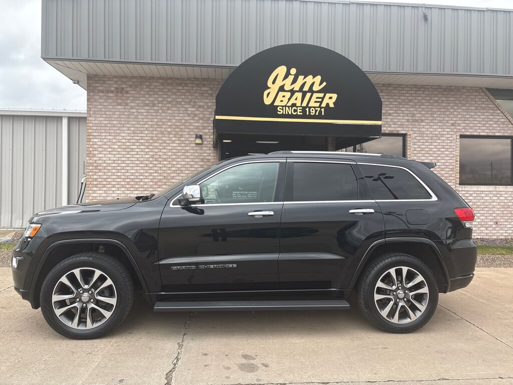 This 2018 Jeep Grand Cherokee Overland 4x4 delivers luxury, capability, and strong everyday performance. Powered by the 3.6L V6 paired with an 8-speed automatic transmission, it offers a smooth ride while the Quadra-Trac II 4WD system and Quadra-Lift air suspension give it excellent capability in all conditions. Finished in Diamond Black Crystal Pearl with a premium black leather interior, this Overland features a dual-pane panoramic sunroof, 20-inch aluminum wheels, LED fog lamps, and a power liftgate. Inside, youll find heated and ventilated front seats, heated rear seats, a heated steering wheel, wood and leather trim, and an 8.4-inch touchscreen with navigation, Apple CarPlay, and Android Auto. Safety features include adaptive cruise control, blind spot monitoring, lane departure warning, forward collision warning with advanced brake assist, park assist, and a rear backup camera. If youre looking for a comfortable and capable SUV with luxury features and true 4x4 capability, this Grand Cherokee Overland is a great choice. Comes with our lifetime engine warranty up to $4,000 if you get your oil changes done here and get the BG additive applied every visit! You're not just a number here at Jim Baier, our #1 priority is taking care of you before, during, and after the sale! We strive to build a lasting relationship with our customers and service their transportation needs for life! And that's what has given us the privilege of being named the #1 rated dealer in Southeast Iowa. Come experience the difference! Call/text (319) 371-4268, or email us at JESSE@jimbaier.com before you stop in to make sure this vehicle is still available and we'll have it pulled up front when you arrive!