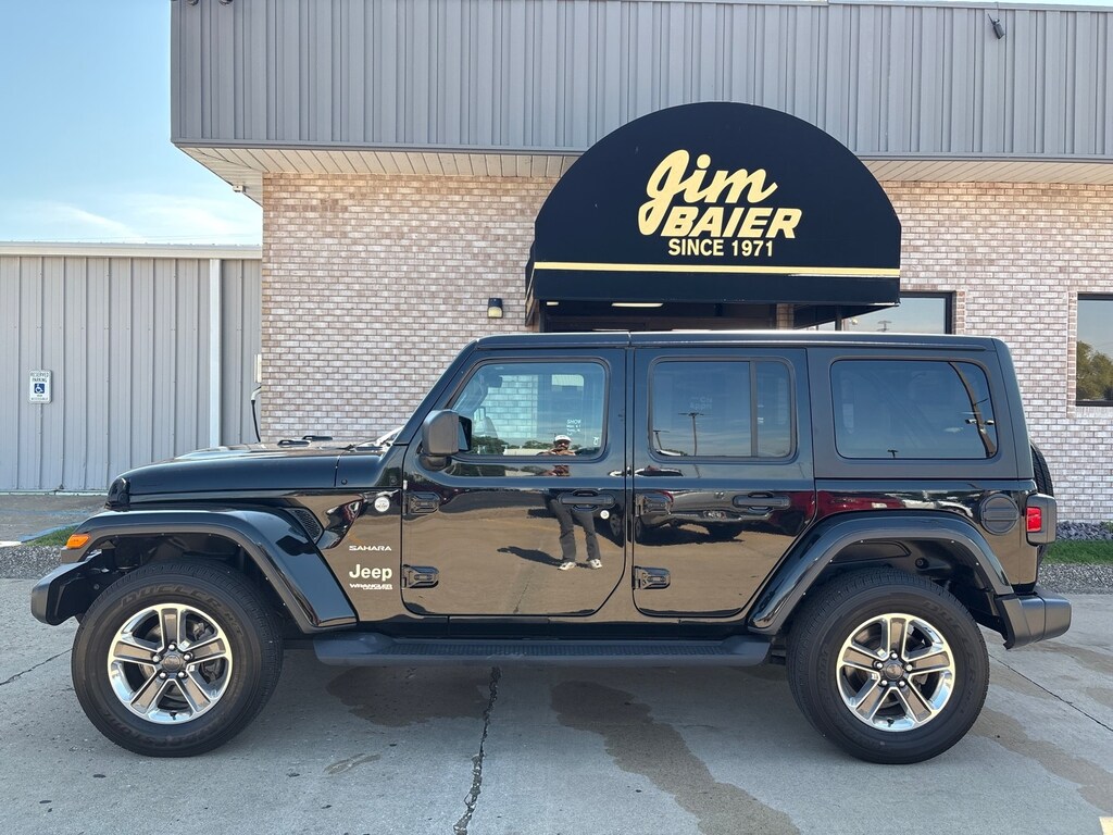 This 1-owner 2021 Jeep Wrangler Sahara comes with a perfect Carfax and delivers legendary 4x4 capability with its Command-Trac 2-speed transfer case, skid plates, and tow hooks. Powered by the 2.0L turbocharged 4-cylinder with the smooth 8-speed automatic, its ready for both the trail and the highway. Inside, youll find cloth bucket seats with Sahara logos, dual-zone automatic climate control, a 7-inch driver display, and Uconnect with Apple CarPlay, Android Auto, Bluetooth, and SiriusXM. Factory upgrades include the 8.4-inch Uconnect 4C NAV system with Alpine premium audio, Wi-Fi hotspot, and SiriusXM Guardian, Travel Link, and Traffic services. Other highlights include heated power mirrors, push-button start, ParkView backup camera, and a universal garage door opener. Comes with our lifetime engine warranty up to $4,000 "if" you get your oil changes done here and get the BG additive applied every visit! You're not just a number here at Jim Baier, our #1 priority is taking care of you before, during, and after the sale! We strive to build a lasting relationship with our customers and service their transportation needs for life! And that's what has given us the privilege of being named the #1 rated dealer in Southeast Iowa. Come experience the difference! Call/text (319) 371-4268, or email us at JESSE@jimbaier.com before you stop in to make sure this vehicle is still available and we'll have it pulled up front when you arrive!