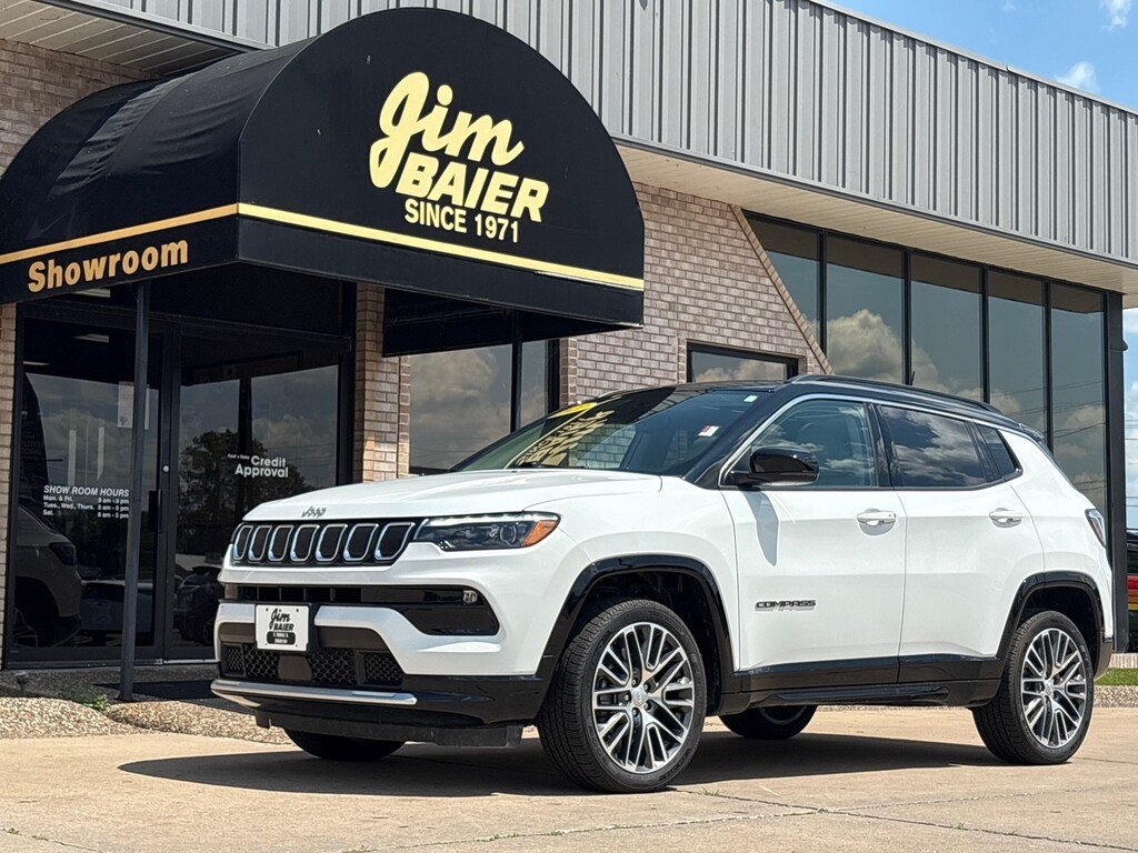 This one-owner, locally traded 2022 Jeep Compass Limited offers upscale comfort, modern tech, and advanced safety in a rugged yet refined package. It features leather-trimmed seats, heated and ventilated front seats, a panoramic sunroof, and a premium Alpine audio system. The 10.1-inch touchscreen with built-in navigation supports Apple CarPlay, Android Auto, and integrated Alexa voice commands. Safety comes first with adaptive cruise control, forward collision warning, blind-spot monitoring, lane management, and a rearview camera with park assist. Additional highlights include remote start, a power liftgate, dual-zone climate control, and LED exterior lighting. With its sleek design and smart features, this Compass is ready for whatever comes next. Comes with our lifetime engine warranty up to $4,000 "if" you get your oil changes done here and get the BG additive applied every visit! You're not just a number here at Jim Baier, our #1 priority is taking care of you before, during, and after the sale! We strive to build a lasting relationship with our customers and service their transportation needs for life! And that's what has given us the privilege of being named the #1 rated dealer in Southeast Iowa. Come experience the difference! Call/text (319) 371-4268, or email us at JESSE@jimbaier.com before you stop in to make sure this vehicle is still available and we'll have it pulled up front when you arrive!
